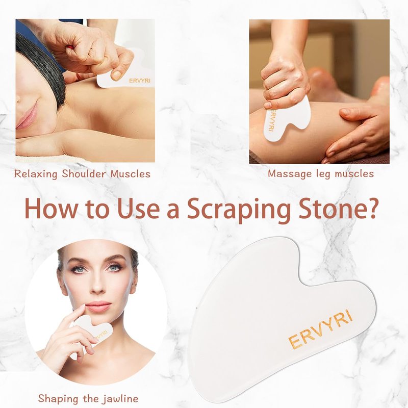 - 【GUA SHA STONE】It has two uses, facial shaving for the chin and body for the back, neck and feet. Scraping stones can be used for both face and body, massage each area 4 to 5 repetitions. Scraping for face and body massage with facial scraping stones.