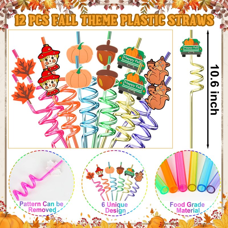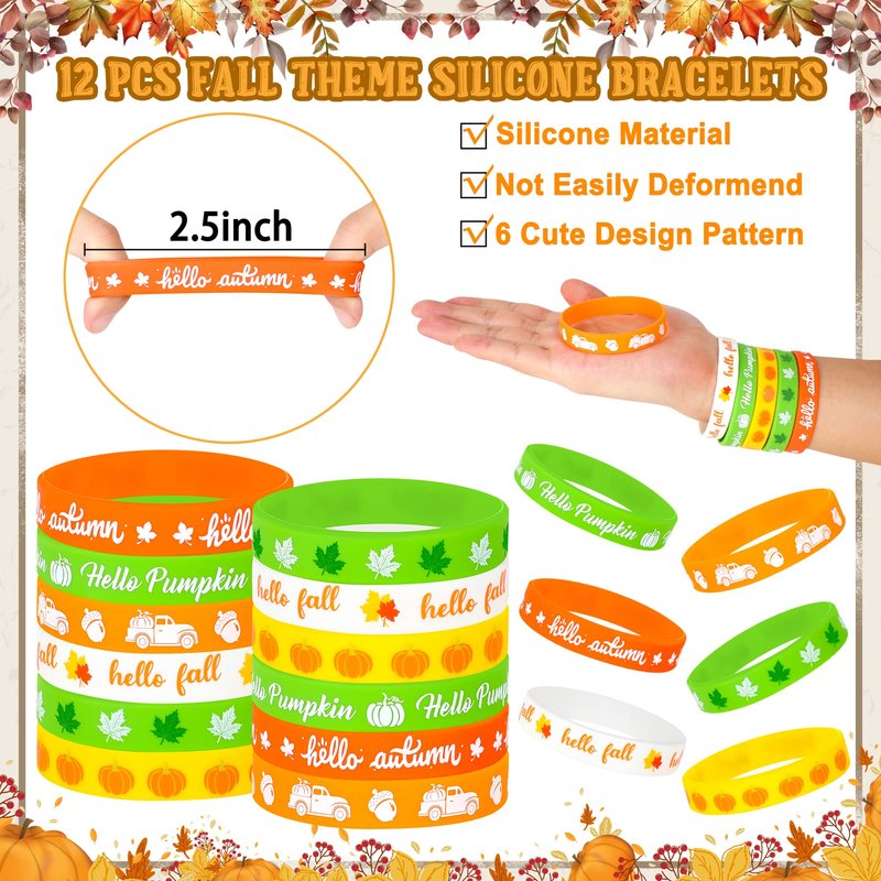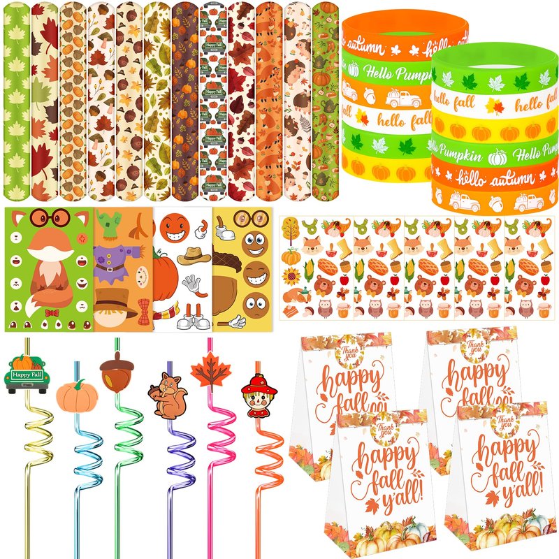- PACKAGE INCLUDE - Fall party favors set includes 12 PCS Slap Bracelets, 12 PCS Plastic Straws, 12 PCS Silicone Bracelet,12 PCS DIY Stickers, 12 PCS Tattoo Stickers and 12 PCS Gift Bags.