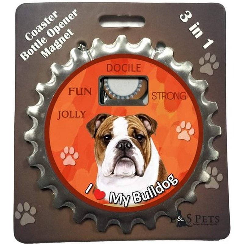 E&S Pets Bulldog Bottle Opener, Coaster and Magnet