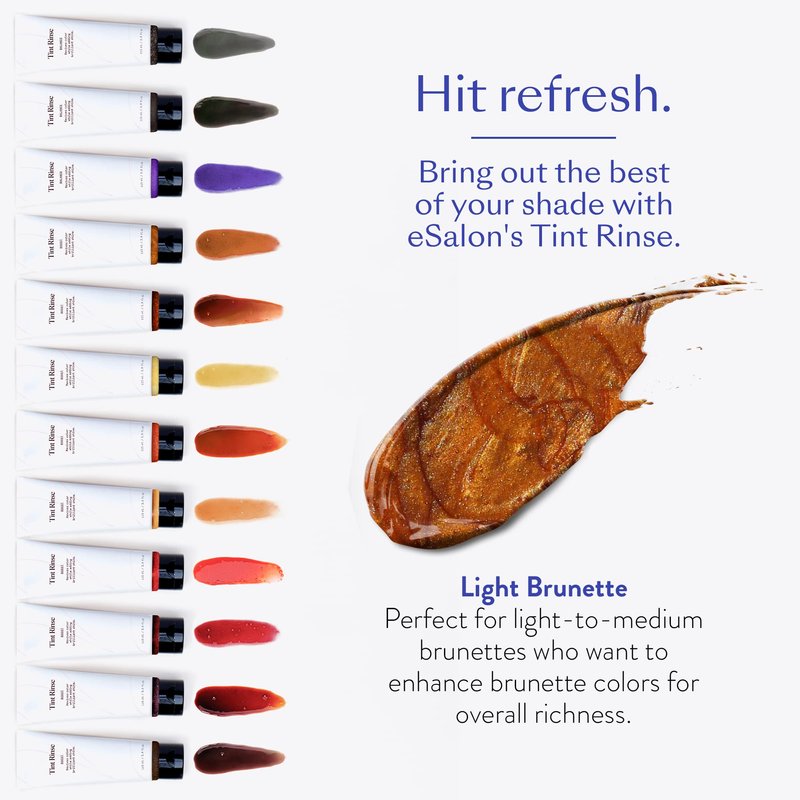 - Hit Refresh: Our secret weapon, the eSalon Tint Rinse in Light Brunette, is a color-enhancing treatment that uses temporary pigments to bring out the best of your shade, helping to keep a rich shade vivid, take things down a notch or enhance your natural color. "Boost" treatments add vibrancy for a color pick-me-up. The best part? It rinses out after a few washes and can be used up to twice a week.