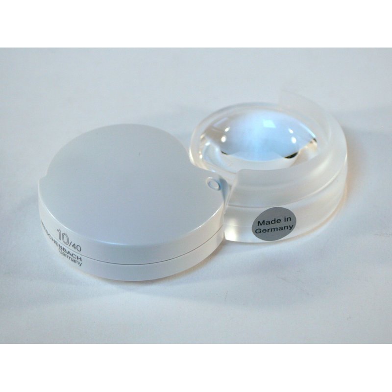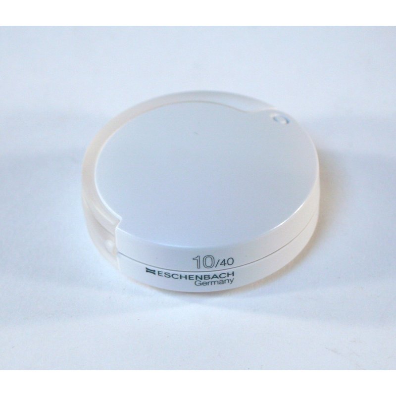 Eschenbach 1520910 mobilent Folding Magnifier The Mobilent LED is a folding pocket magnifier that offers high magnification in a compact size with added illumination. Its built-in case is designed to provide complete protection for the lens when not in use. The LED light can be turned on when needed by pressing the button on the bottom of the magnifier case, thereby providing extra light for reading indoors or in dimly lit environments. An 18” lanyard is included with each Mobilent LED magnifier which can be threaded through the loop hole in the magnifier case and worn around the neck. The quick-release clasp on the lanyard allows the magnifier to be easily unhooked when needed. The Mobilent LED is ideal for near spotting tasks such as reading price tags, prescriptions, labels and more. Due to its compact size, it fits easily into a pocket or purse and is ideal for magnifying small print discretely.