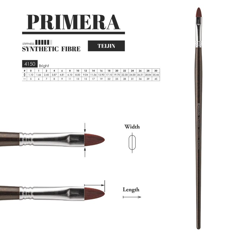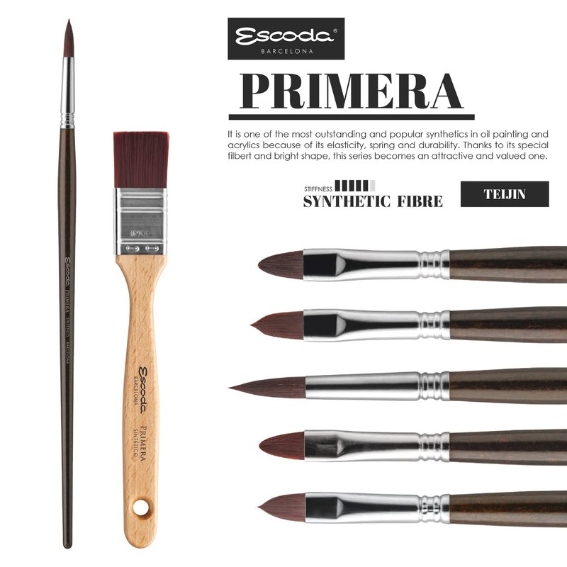 - 100% SYNTHETIC TEIJIN FIBER ARTIST PAINT BRUSH – Escoda Primera series brushes are made with a maroon-colored Teijin fiber that maintains a level of toughness, yet unusual softness for work with heavy-bodied paints