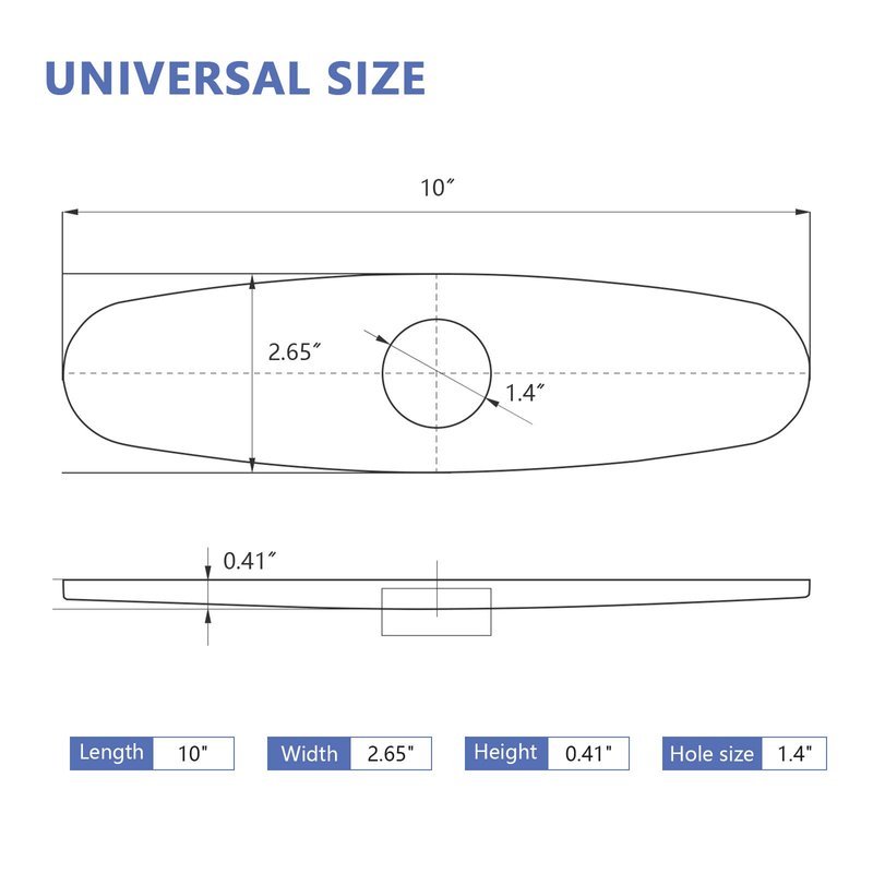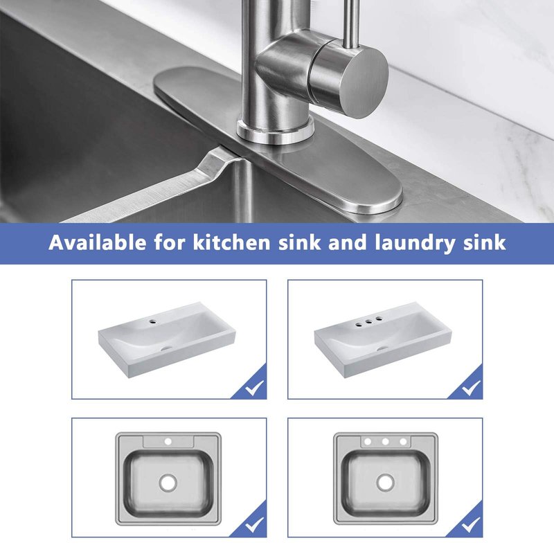 - Universal Size for Perfect match- Standard 10 inch escutcheon plate can perfectly fit almost all single hole faucets, allows single hole laundry or kitchen faucet to be installed on 2 or 3 hole kitchen sink.