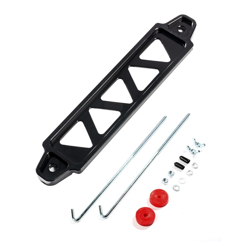 ESEWALAS Aluminum Alloy Battery Hold Down Bracket,Car Battery Holder Kit with 10in J bolts,Car Battery Lock Down,Battery Tie Down Bracket,Universal Bracket Hold Lock Accessories (Black)