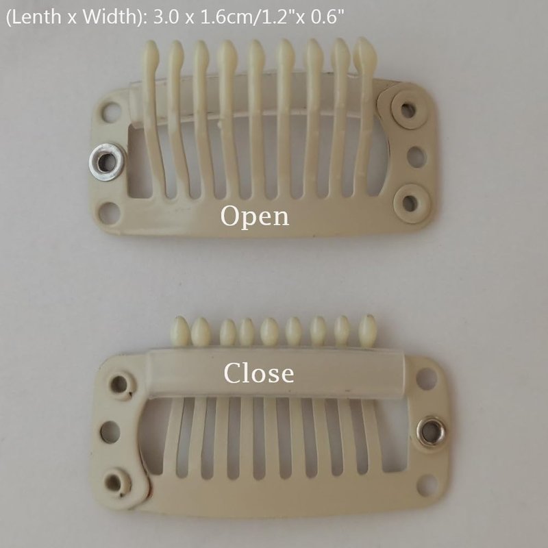 1) 9 Teeth Snap Comb Clips: Great accessories for clip in hair extensions, weaves, wefts, wigs, toupee, U-part wigs, hair pieces, tracks, Sarah's wraps, veils and perfect for fastening hats and make cute hair things for little girl by adding beads,ribbons,yarn on the clips.