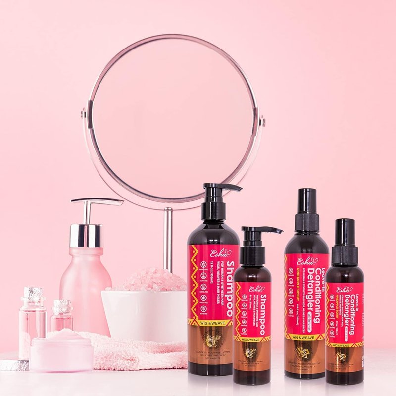 Introducing Esha Girl Wig & Weave Leave-in Conditioner & Detangler, the ultimate solution for maintaining the beauty and longevity of your wigs, weaves, hair pieces, and natural hair. Specially formulated for both human and synthetic hair, this versatile product ensures your hair remains soft, manageable, and vibrant. Enriched with nourishing jojoba oil, Esha Girl’s leave-in conditioner deeply moisturizes and revitalizes hair, preventing dryness and breakage. Experience the delight of easy detangling with every use, as this conditioner smooths out knots and tangles effortlessly, leaving your hair silky and tangle-free. The refreshing pineapple scent adds a tropical touch to your hair care routine, leaving your hair smelling as good as it looks. Ideal for daily use, this lightweight and non-greasy conditioner maintains your hair's natural shine and bounce without weighing it down. Transform your hair care regimen with Esha Girl Wig & Weave Leave-in Conditioner & Detangler and embrace the beauty of soft, manageable, and beautifully scented hair every day.