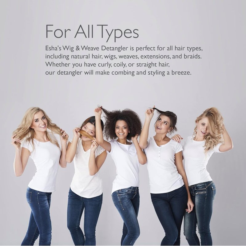 Esha's Wig & Weave Detangler is perfect for all hair types, including natural hair, wigs, weaves, extensions, and braids. Whether you have curly, coily, or straight hair, our detangler will make combing and styling a breeze.