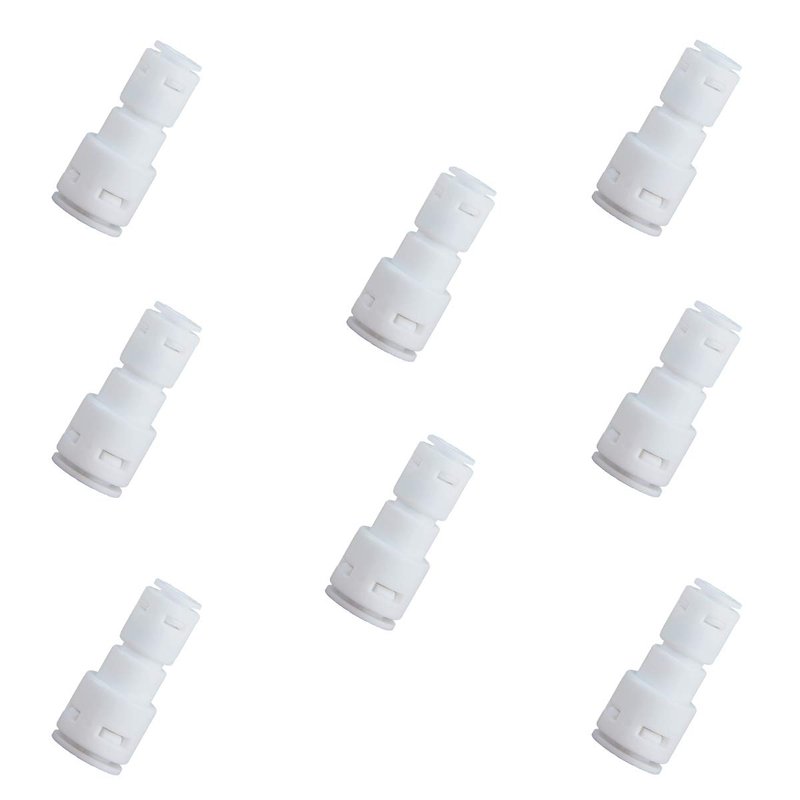 ESHIONG Reducing Straight RO(Reverse Osmosis) Water Filter Union Connector,NSF Certified Plastic Push Fit Quick Connect tube Fittings(1/4" x 3/8" Inch OD coupling)(pack 8)