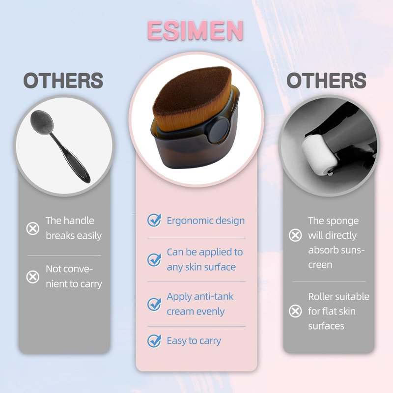 - Our sunscreen brush set features newly upgraded third-generation ergonomic technology, providing a comfortable grip for precise and controlled application. Unlike traditional roll-on applicators, our brush applies sunscreen evenly without absorption, saving you sunscreen and ensuring better coverage.