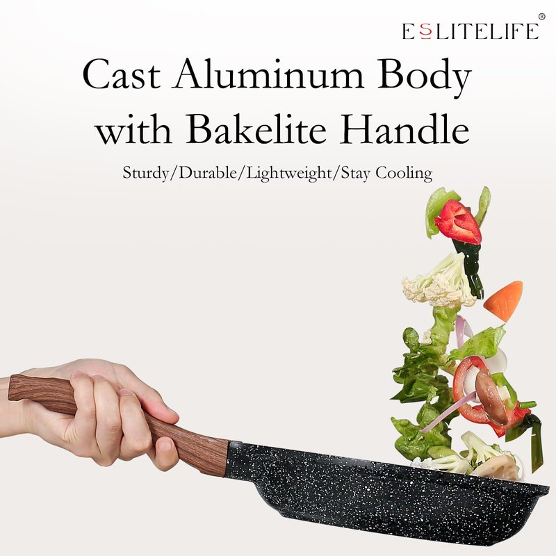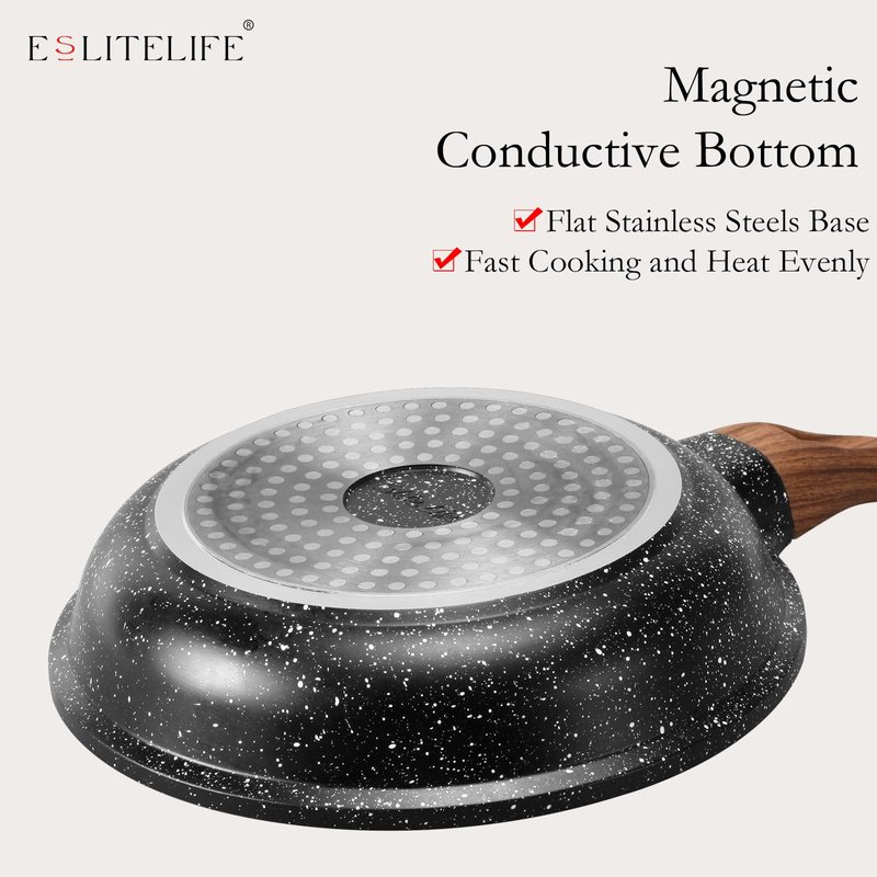 ESLITE LIFE nonstick skillet set is perfectly suitable for gas, ceramic, electric, halogen or induction stoves.