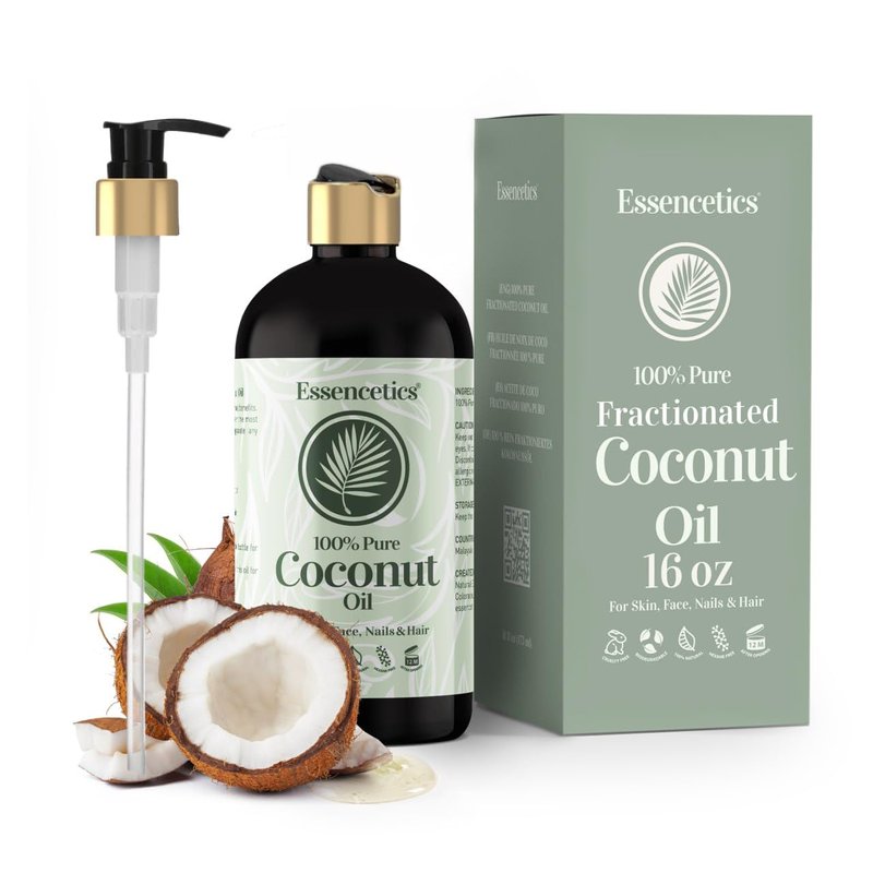 Essencetics Fractionated Coconut Oil 16 oz - 100% Pure & Natural Liquid Coconut Oil for Skin, Body, Face, & Hair - Natural Cold Pressed, Organic Massage Oil for Massage Therapy & Date Night