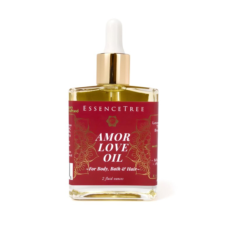 - - Originally created as a couples massage oil for Valentines’ Day, the Amor Love oil has become a favorite of all who sample it. -Used as a therapeutic massage oil, anti-aging skin and bath oil and hair restorer, its potent ingredients are known for their abilities to enhance and heal both the physical body and the heart. They counteract aging and inspire feelings of love, self-appreciation and spiritual connection.