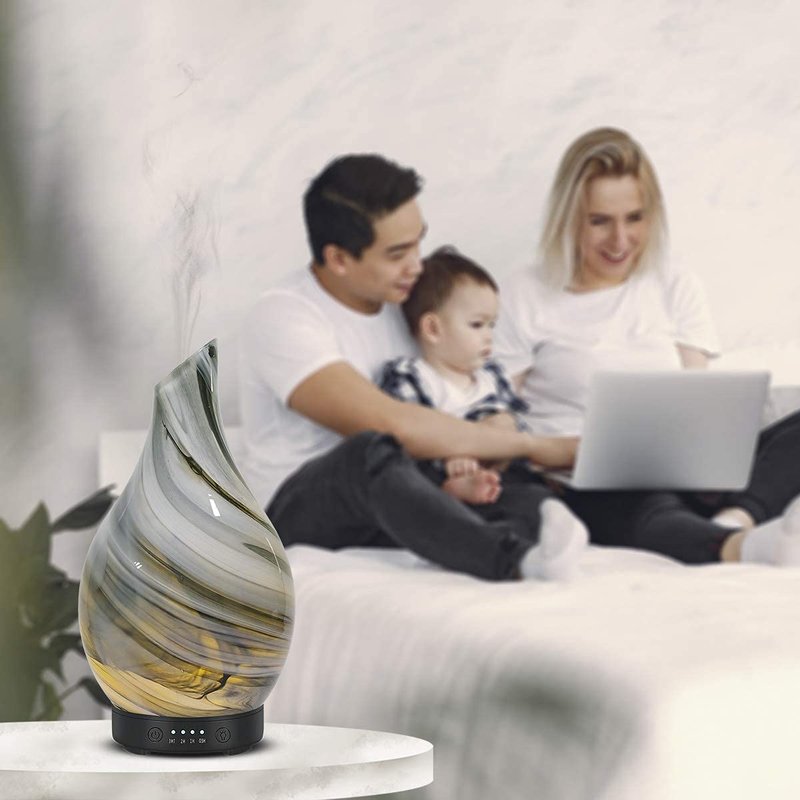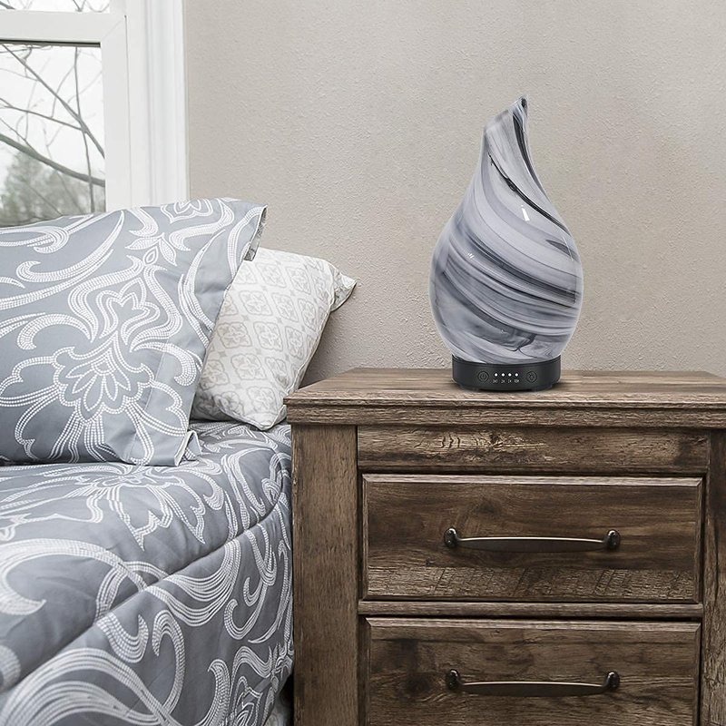 - Unique Design: Glass cover, ink painting design, a perfect addition to any contemporary home, office, gym, spa or studio. Compact and portable, the aroma essential oil diffuser’s cover can be effortlessly removed, easy to fill with water and a few drops of essential oil, helping you benefit from aromatherapy. Tips: THE ITEM IS GRAY WHEN THE LIGHT IS NOT TURNED ON.