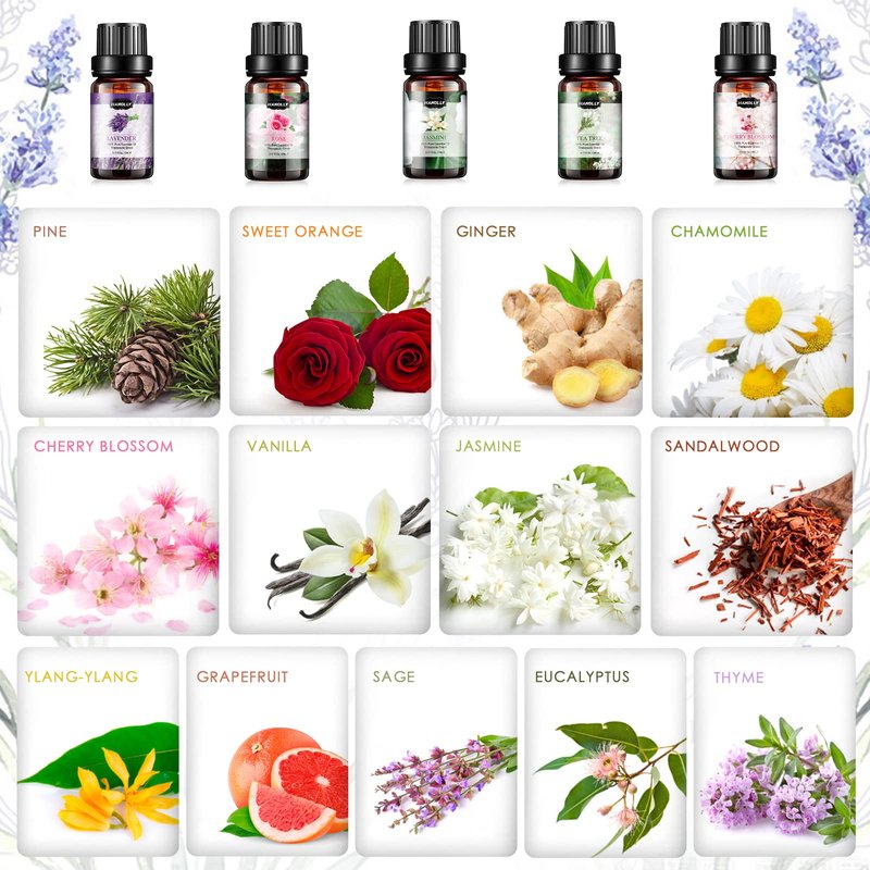 - 🎁Endless Uses: Essential oils are ideal for use in diffuser. Used for aromatherapy, massage, skin & hair care, natural perfumery, bath, saunas, air freshening, househld items, office, campground, yoga room, car and spa.