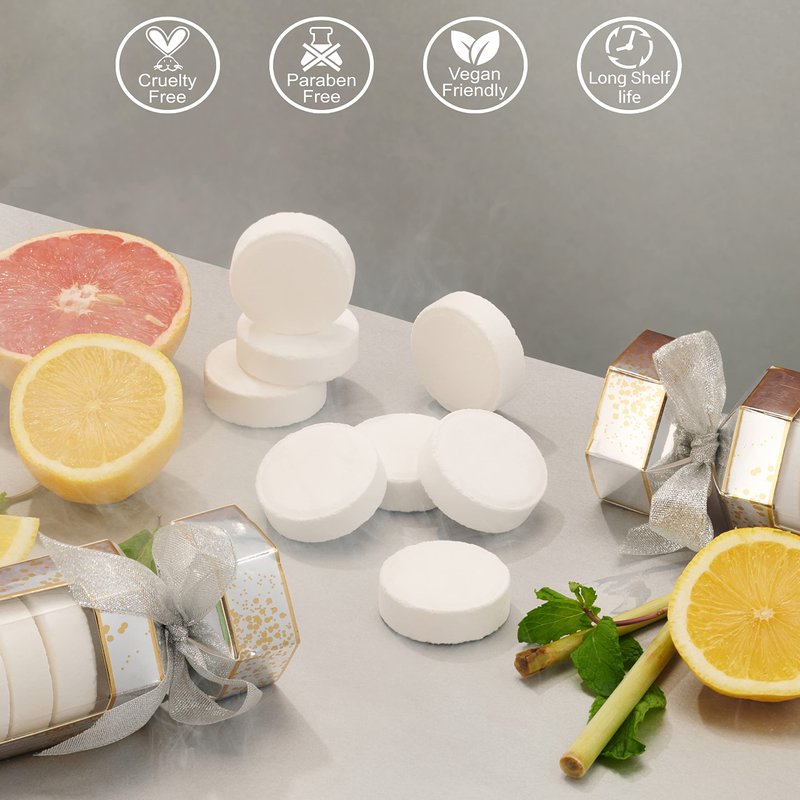- Melt Away to Another Place: Simply place one of your shower fizzies into the corner of your shower. For best results, do not submerge. Allow the heady aromas to whisk you away into relaxation and enjoy your small, yet meaningful moment of self care. And unlike other shower tablets, Lovery Shower Steamers are non-slip, safe for septic systems, Vegan, 100% Paraben & Cruelty Free for a complete feel-good immersion.