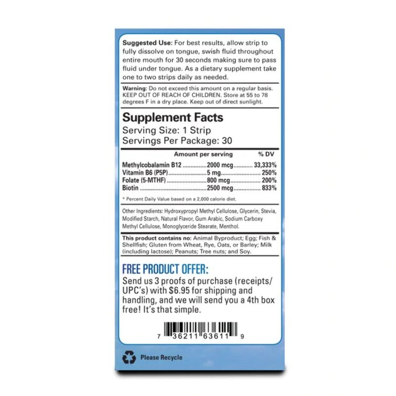 Essential Source Vitamin B12 Strips with B6 and Biotin, 2000 mcg - 30 Day Supply