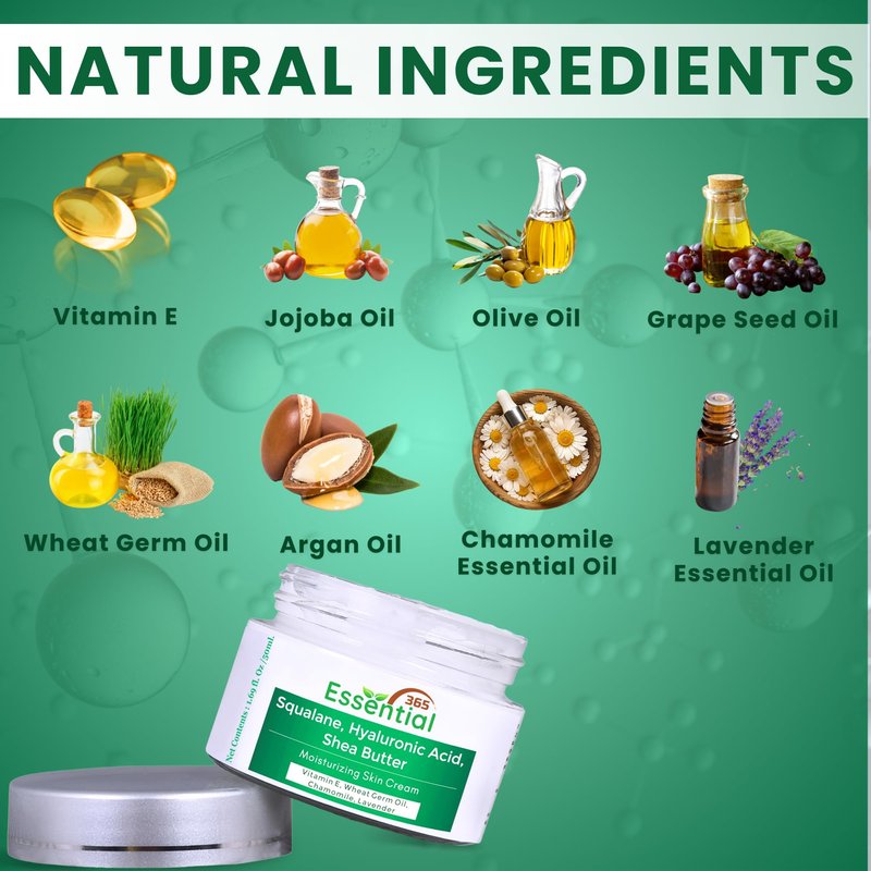 Essential365 Hyaluronic Acid Face Cream, Skin Care | Squalane Cream | Moisturizer Cream | Enriched With Argan Oil, Shea Butter, Jojoba, Grape Seed, Wheat Germ, Chamomile,Lavender | 1.7Oz(50ml)