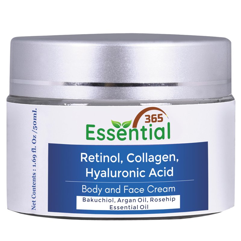 Essential365 Retinol Face Moisturizer, Collagen Skin Care | Hyaluronic Acid Face Cream | Hydrating Night Cream | Enriched with Bacuchiol, Argan Oil, Rosehip Oil, Grape Seed | 1.7Oz (50ml)