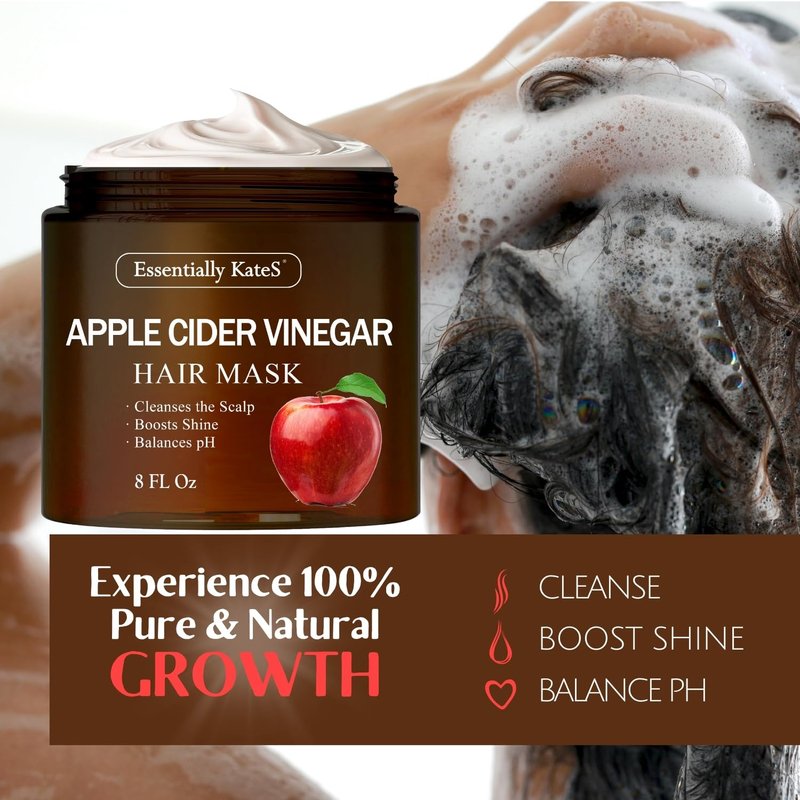 Essentially KateS Apple Cider Vinegar Hair Mask 8 Fl Oz - Support Smoothness, Strength, & Shine - Fight Itchy Scalp and Soften Strands - Deep Hydration