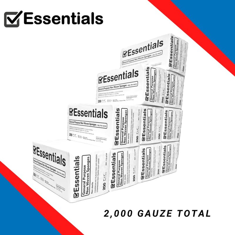 - INCLUDES ONE (1) FULL CASE: Each case of Essentials General Purpose Non Woven Sponges include 10 packs of 200 sponges.