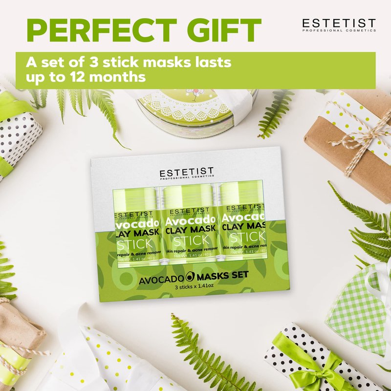 ESTETIST Avocado Clay Mask Stick Set Deep Pore Cleanser Blackhead Remover Replenishing Moisture Oil Control and Balance Skin Detoxifying Anti-Acne Treatment Skin Care for All Skin Types Pack of 3