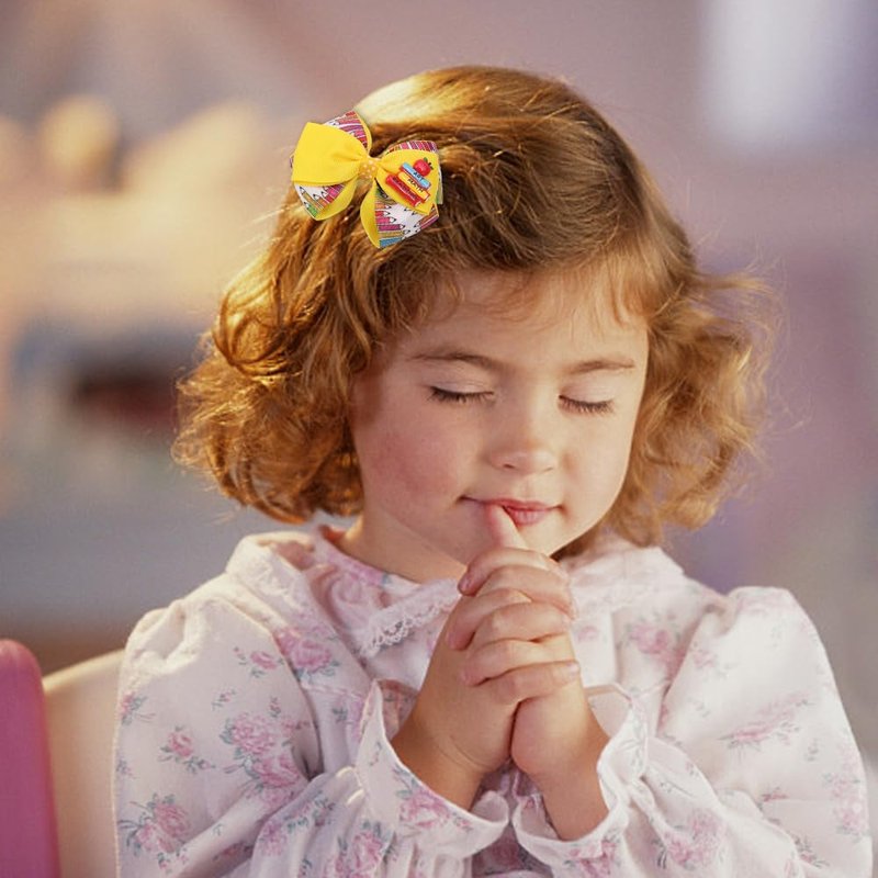 - 📖【Occasion】: This Kindergarten fashionable hair accessorie is suitable for various occasions, such as beginning of school decorations/commencement ceremony/welcome party/children's day party/school anniversary, etc.. The colorful hair clips can be decorated on kids' hair, clothes, bags, making them be the most unique and shining one. You can also give this red yellow grosgrain hair bow clip as a gift to kids, friends and classmates for a happy time together.
