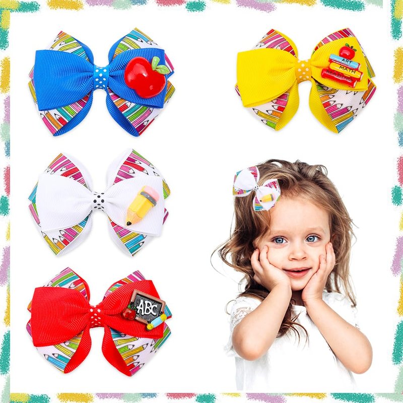 - 📖【Package】: You will get 4 pieces welcome back to school hair bows in one package. Perfect for parties, holidays, schools and everyday wear.