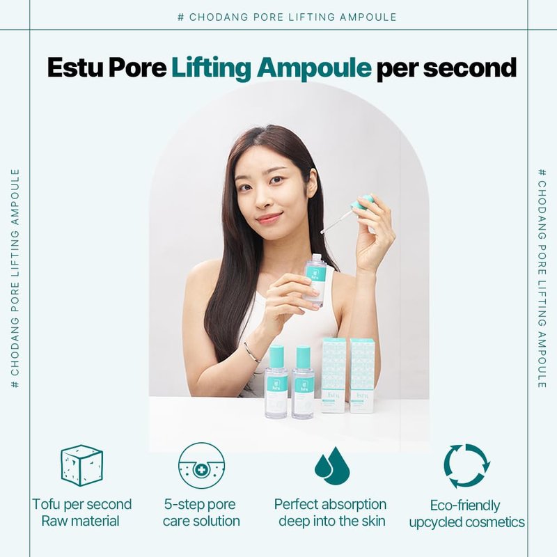 ESTU Chodang Pore Lifting Ampoule 50ml ㅣ Vegan Moisture Essence ㅣ Lightweight Serum with CEXO Technology ㅣ Korean Skincare for Visible Pore Care 50ml