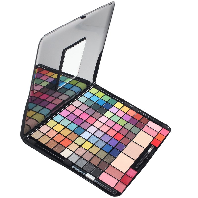 The ETA Cosmetics 103 Colors Deluxe Makeup Palette comes with a wide array of colors and shades all unique from one another. The palette comes with 52 Eyeshadow colors, 42 Blush shades, 3 Powder Cakes and 6 Lip Gloss colors. The kit also comes with 3 soft tip applicators and 2 soft hair applicators. The palette comes with a layout guide on the back of the packaging to show the artist where each Eyeshadow, Blush, Powder Cake, Lip Gloss is located. The palette also comes with a built-in mirror for easy application when on the move. When closed the palette is 10.25 in. (L) x 7.25 in (W) x .5 in (H).