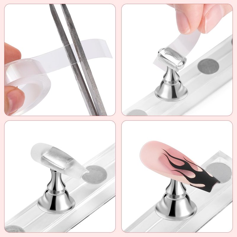 - PACKAGE INFORMATION: You will get 2 sets of acrylic nail holders and 2 strips of double-sided tape (each set includes 1 nail holder base and 5 nail exercisers), enough for your nail training needs. The complimentary double-sided tape holds your nails securely in place so you can focus on creating amazing designs without worrying about your nails falling off.