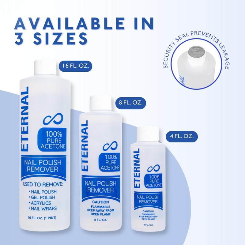 - EXPERIENCE SALON-QUALITY RESULTS: Achieve professional manicure and pedicure results at home with Eternal 100% Pure Acetone Nail Polish Remover. Say goodbye to stubborn and tough glitter, gel, acrylic or any nail polish, and leave your nails ready in record time!