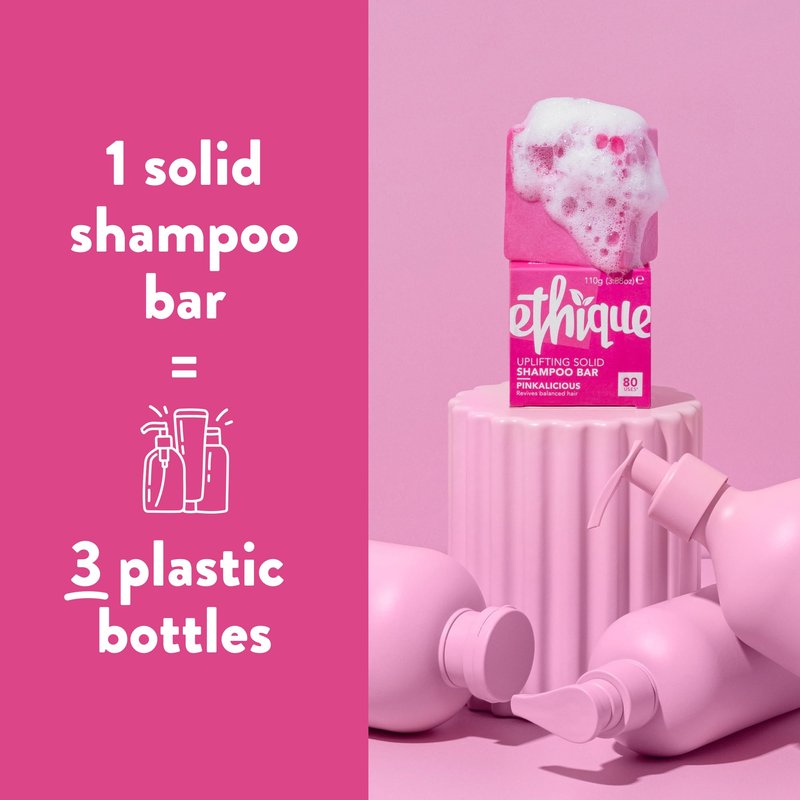 Sweet and zesty with a delicious blend of pink grapefruit and vanilla, Pinkalicious is perfect for balanced hair that is neither too oily, nor too dry. Fairly traded creamed coconut and cocoa butter revitalise and restore for soft, smooth tresses. Glycerine, a humectant, draws moisture to hair for weightless shine and luscious locks. This delightfully fruity shampoo is Ethique pink for a good reason: Pinkalicious was released as a limited-edition bar in 2017 in celebration of our 5th birthday - and it was so popular we brought it back for good! 92% of users* found their hair felt softer and more manageable after using Pinkalicious. *based on 39 consumers surveyed. New to solid products? Try a mini Pinkalicious (great for travel). Or browse our full range of shampoo bars. For balanced hair Up to 80 uses Pink grapefruit oil & vanilla scent Great lather with no waxy residue With creamed coconut to boost shine pH: ~4.5 Soap-free formula