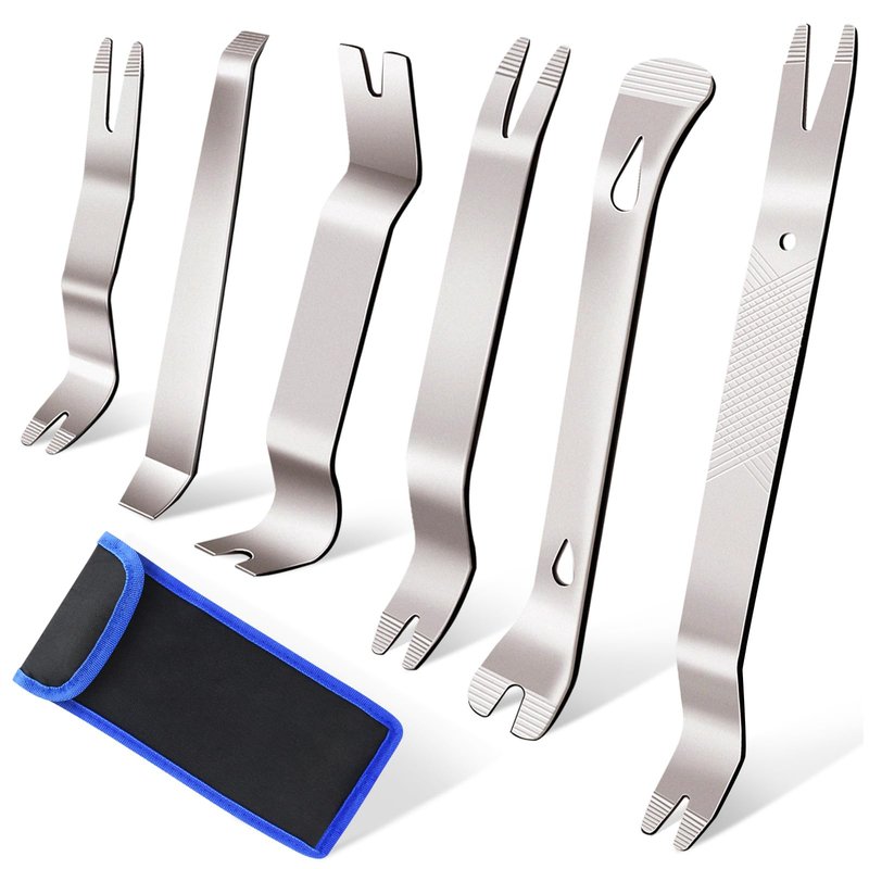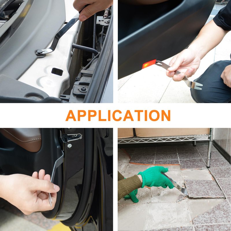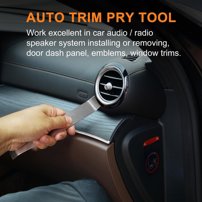 - EFFECTIVE & MULTI-USE: The metal pry tool is excellent for use in auto trim removal, car panel removal, audio& radio removal, auto dash, center console unit, window trims removal, etc. Exterior& interior trim removal, automotive or boat interior fastener or furniture restoration.
