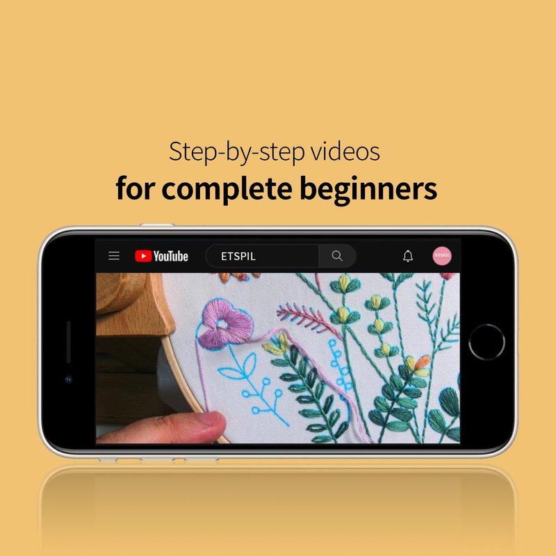 You can start enjoying the fun of embroidery with just this entire set of accessories, instructions, and synchronized video tutorials.
