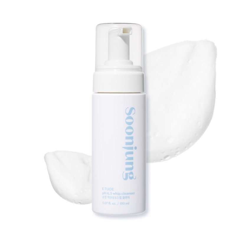 ETUDE SoonJung pH 6.5 Whip Cleanser 5.07 fl.oz (150ml) 23AD | Non Comedogenic & Hypoallergenic Soft Bubble Hydrating Facial Cleanser for Sensitive Skin | Low-pH Korean Face Wash | K-Beauty