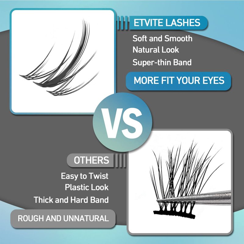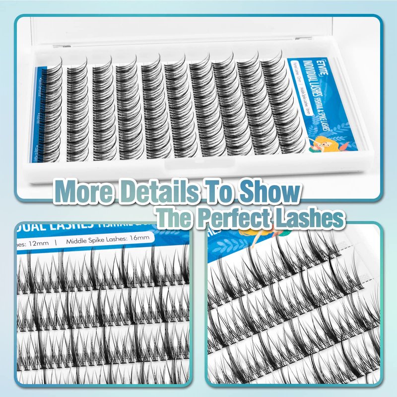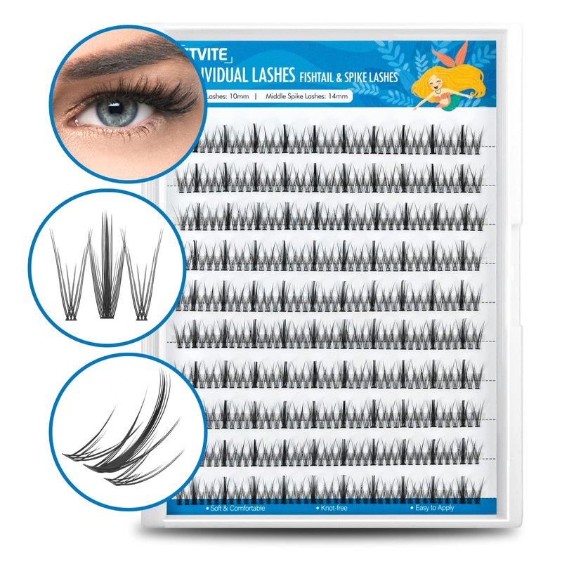 ETVITE Individual Lashes Eyelash Extensions 3D Clusters, Soft Natural Lightweight Handmade, Volume Individual Lashes Daily Use (Fishtail & Spike Lashes 10mm)