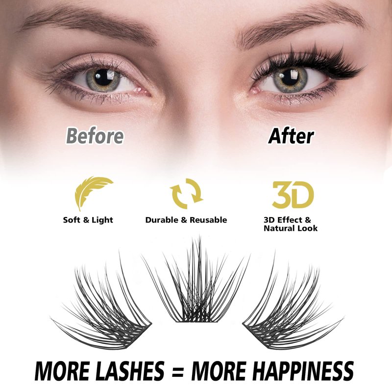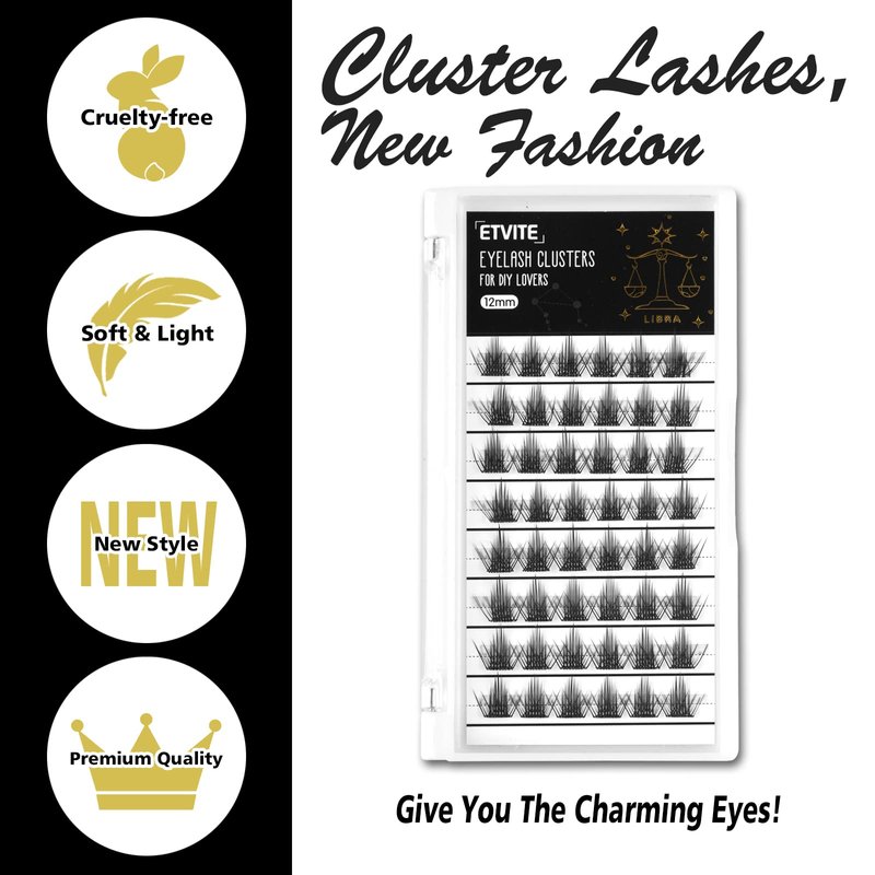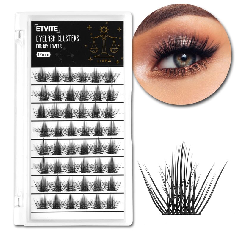 ETVITE Lash Clusters DIY Cluster Lashes Individual Lashes, 3D Effect C Curl Home Eyelash Extensions Manga Eyes, Soft Light Natural Look New Styles(Libra 10mm)