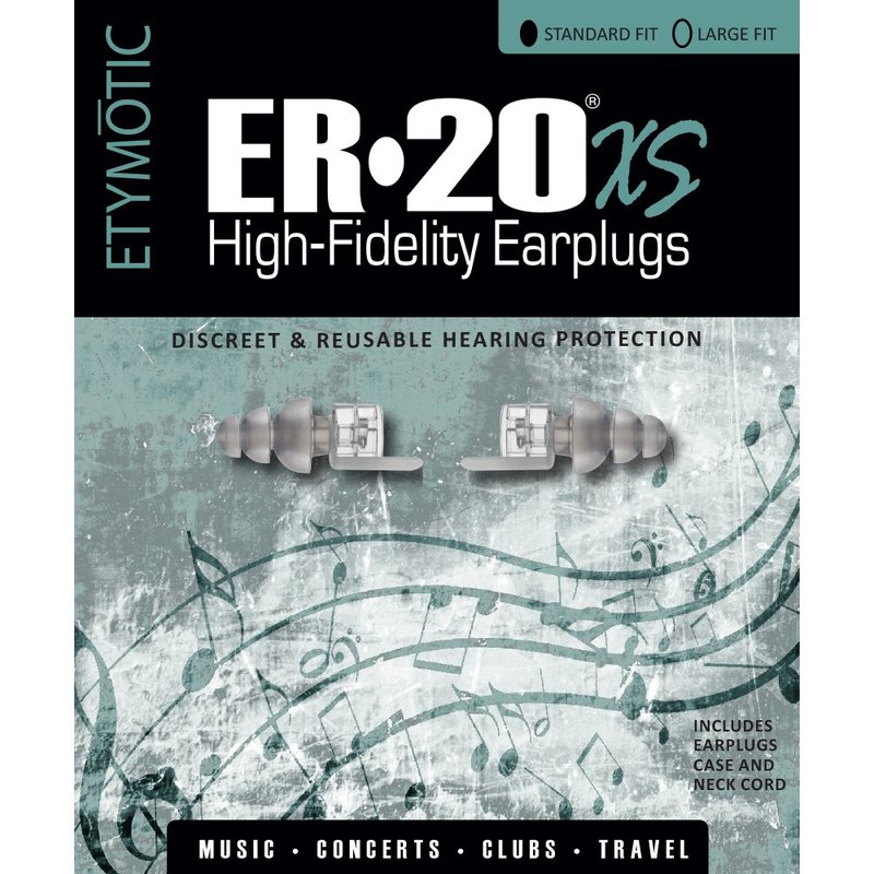 - Includes: 1 pair Standard Fit ER20XS High-Fidelity Earplugs, easy-to-install neck cord, and a carrying case that easily fits in your pocket or purse