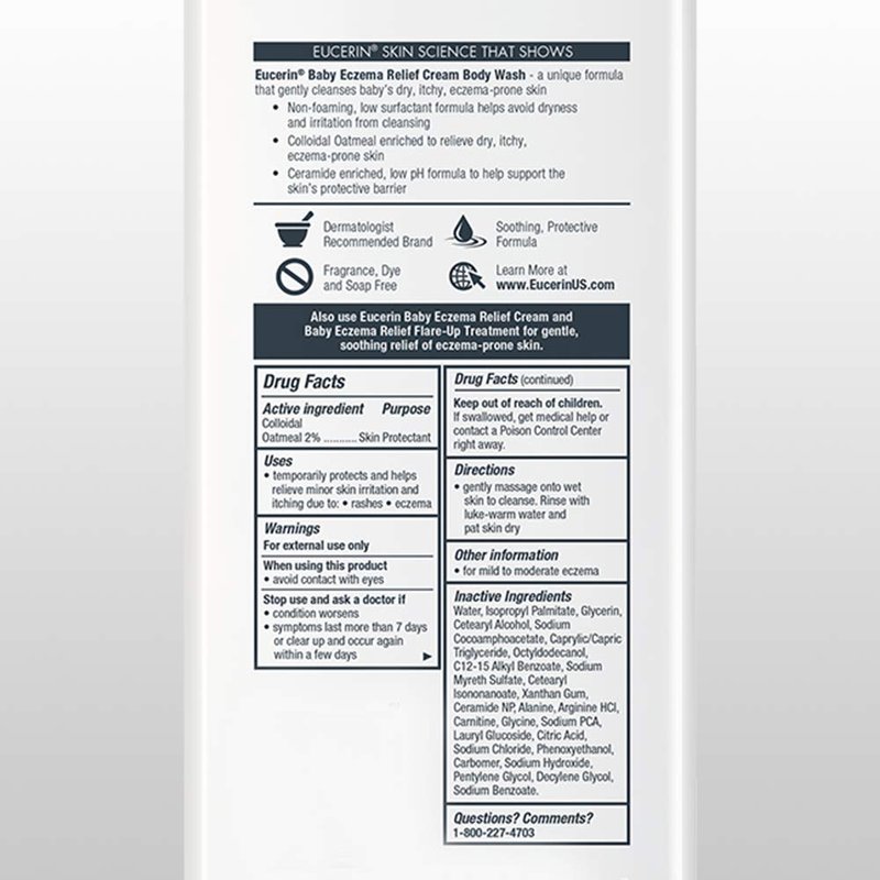 - Includes one (1) 13.5 fluid ounce bottle of Eucerin Baby Eczema Relief Cream Body Wash