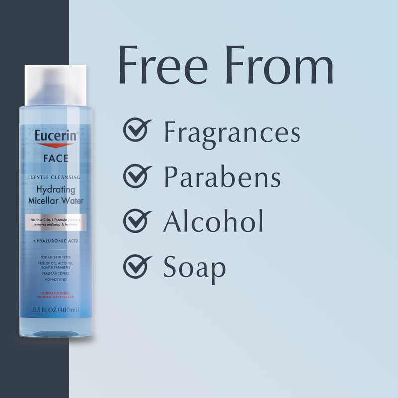 - Non-Drying: Eucerin Face Gentle Cleansing Hydrating Micellar Water is fragrance-free and non-drying