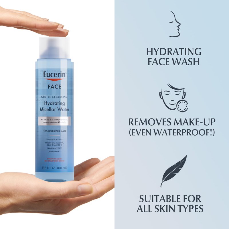 - Includes one (1) 13.5 fluid ounce bottle of Eucerin Face Gentle Cleansing Hydrating Micellar Water