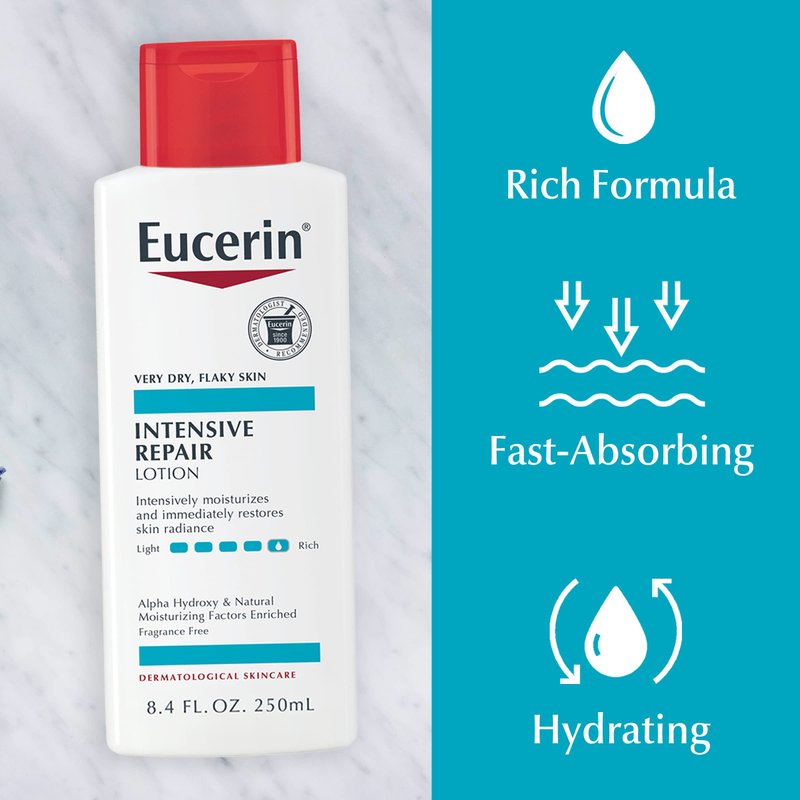 - Includes one (1) 8.4 fluid ounce bottle of Eucerin Intensive Repair Body Lotion