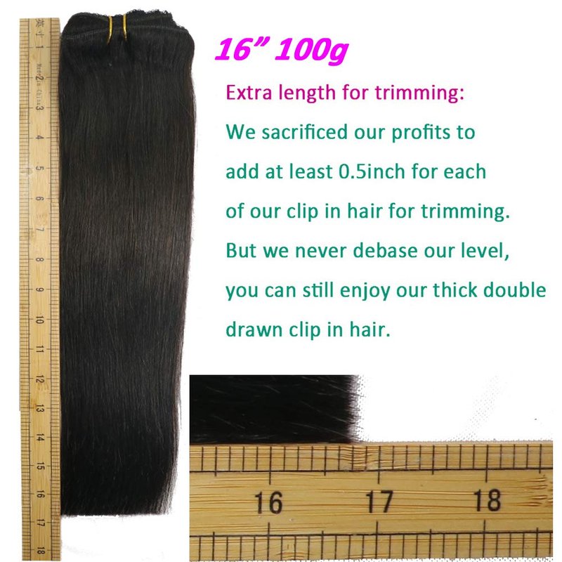 - {Extra length for trimming}-- We sacrificed our profits to add at least 0.5inch for each of our clip in hair extensions for trimming like many famous hair brand. It is one of our advantage on Amazon. We never debase our quality level, all of our hair weight and length are meeting our description.
