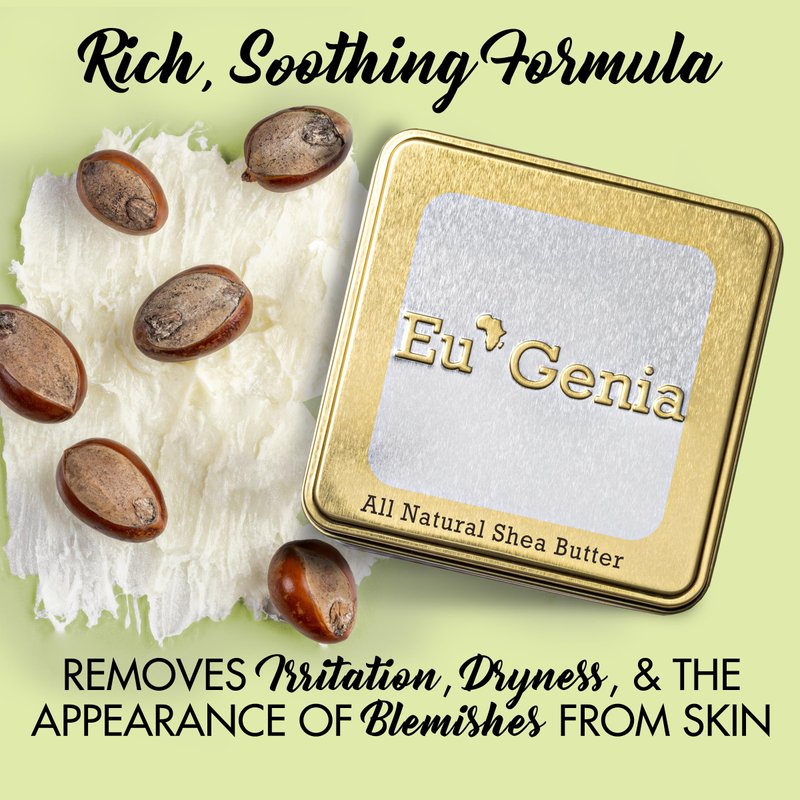 - Ultimate Moisturizing Gift Set: Treat yourself or a loved one with the Eu'Genia Extra Strength Shea Butter Gift Set, featuring two unscented 6oz tins of our rich and intensive moisturizing shea butter, a chic bag, a personalized gift note, and two sheets of tissue paper.