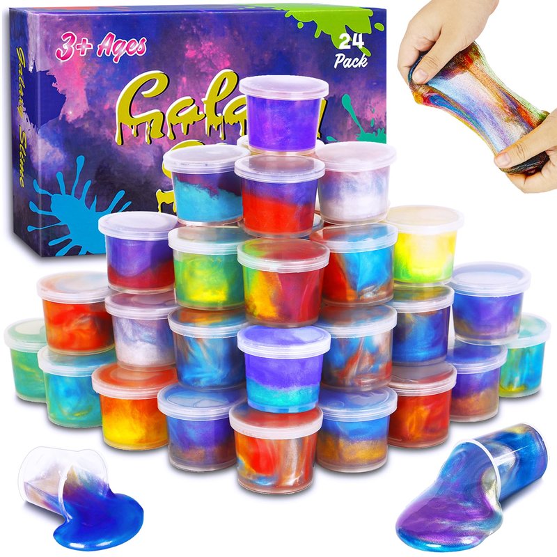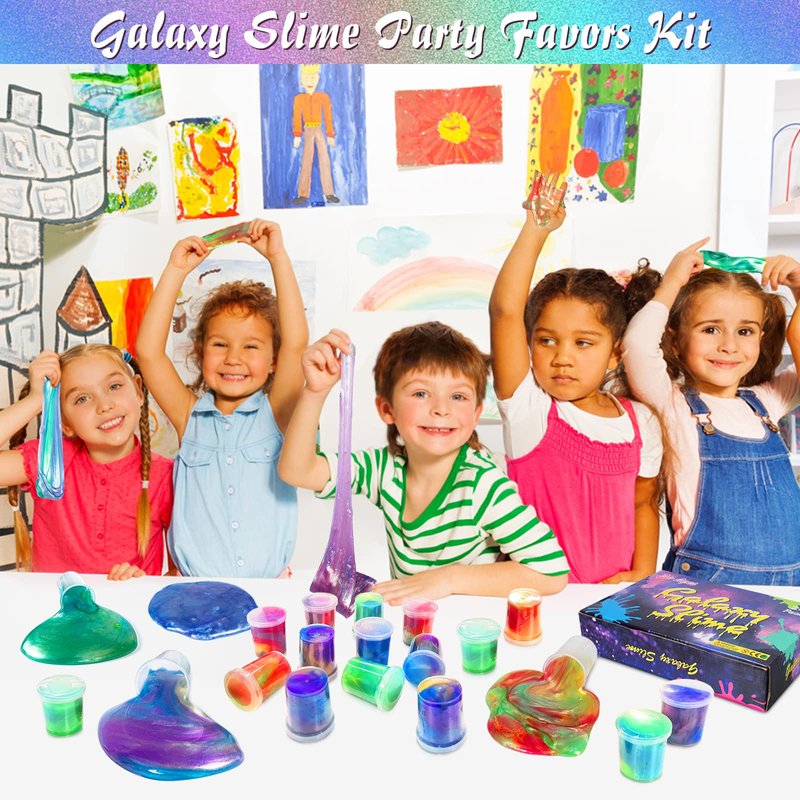 Eunvabir 24 Pack Galaxy Slime Party Favors Kit for Kids, DIY Non-Sticky Slimes Stress Relief Toys for Girls Boys, Christmas Valentine Birthday Classroom Prizes/Games/Gifts