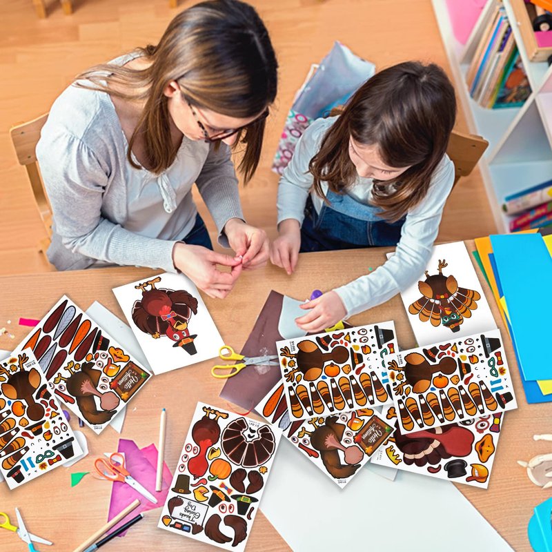 Eunvabir 24 Sheets Make-A-Turkey Stickers Thanksgiving Party Favors, Thanksgiving Crafts Gifts for Kids, DIY Activities Stickers for Fall Autumn Harvest Games Toys Decorations Friendsgiving