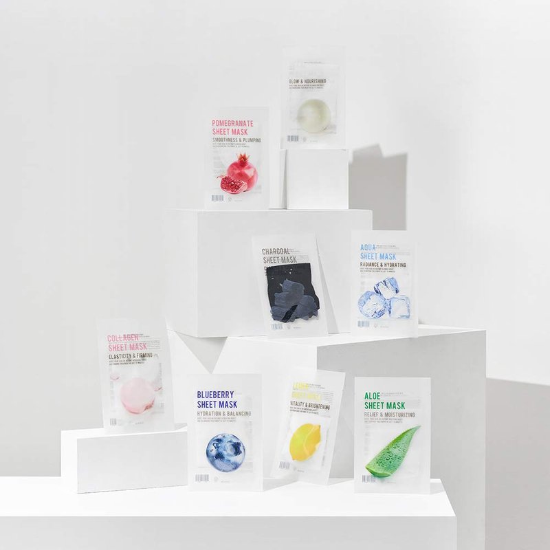 - Pick the Sheet Mask Pack up depending on your mood today! We prepare everything what you need to your skin now. [Aloe, Collagen, Aqua, Pearl, Blueberry, Lemon, Pomegranate, Charcoal]