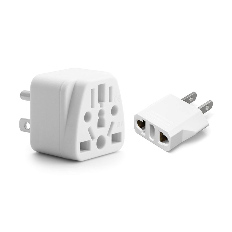 US STYLE TRAVEL PLUG ADAPTER KOMBO WHITE Awesome for all your plugs and devices. The adapters offers universal input and excellent grounded safety. They are both very compact and lightweight for easy, convenient usage wherever you need it. Fits easily in luggage, pocket, purse, or drawer. Use with worldwide plugs from Europe, Australia, UK, India, and Italy. They are ideal for Type A/B wall outlets in the US, Canada, Japan, Mexico, Central America, the Caribbean and many other countries. You get excellent safety and convenience with a power rating of 10a max and 250V max. Please be aware these Adapters will not convert voltage or electricity (use only with dual voltage devices (110-240V). PRODUCT FEATURES: