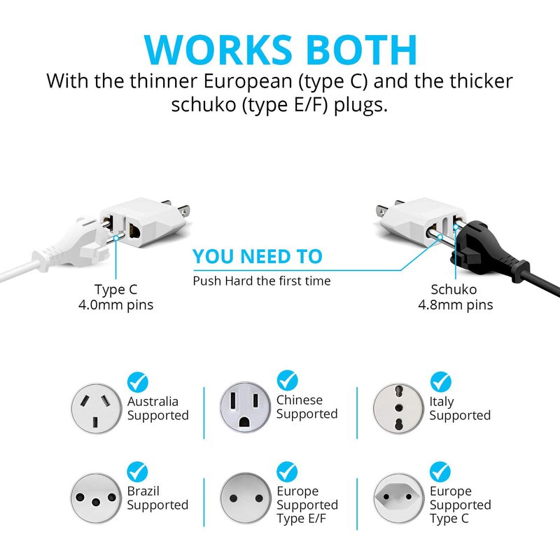 - * US TRAVEL PLUG ADAPTER KOMBO designed specially for American travelers. These let you instantly plug in to charge your smart phone, laptop, hair dryer, straightener, shaver, bluetooth speaker, tablet or any other devices at hotels, airports, and offices worldwide. These adapters are the reliable convenience you need to fully enjoy your trips without annoying adaptability problems.