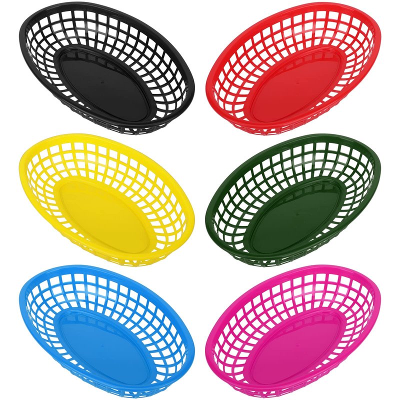 EUSOAR Plastic Serving Trays, 6pcs 9.4"x 5.9" Food Baskets for Serving, Reusable Bread Baskets for Fast Food Restaurant Supplies, Deli Serving, Chicken, Burgers, Sandwiches & Fries